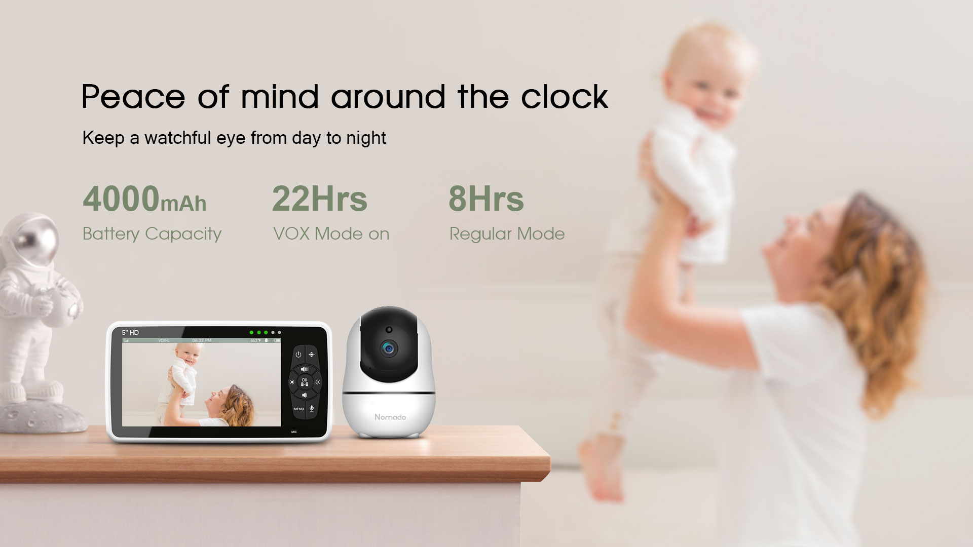 Stay informed about your baby's activities during the night with Nomado's advanced 2K UHD night vision feature. Never miss a moment of your baby's movements, as this feature provides a clear and complete picture of all the sounds and movements in the room.