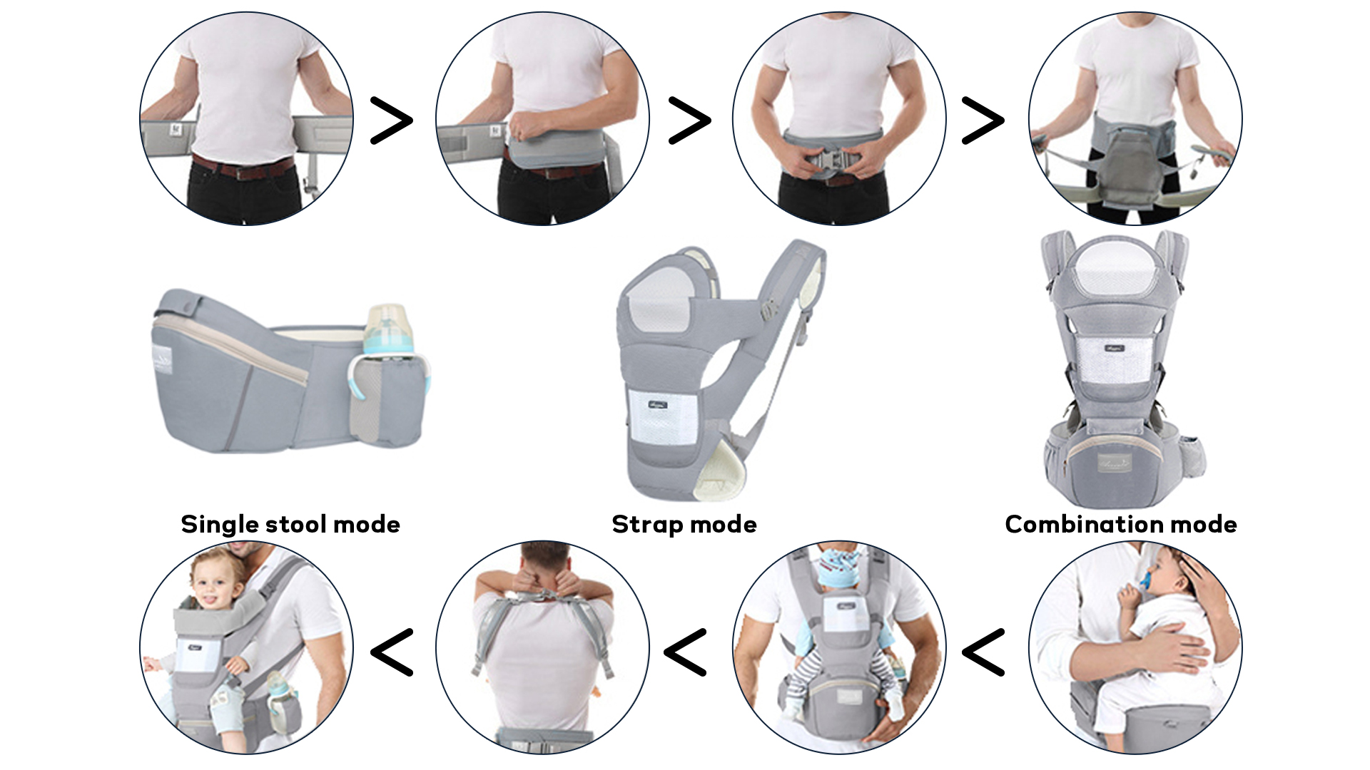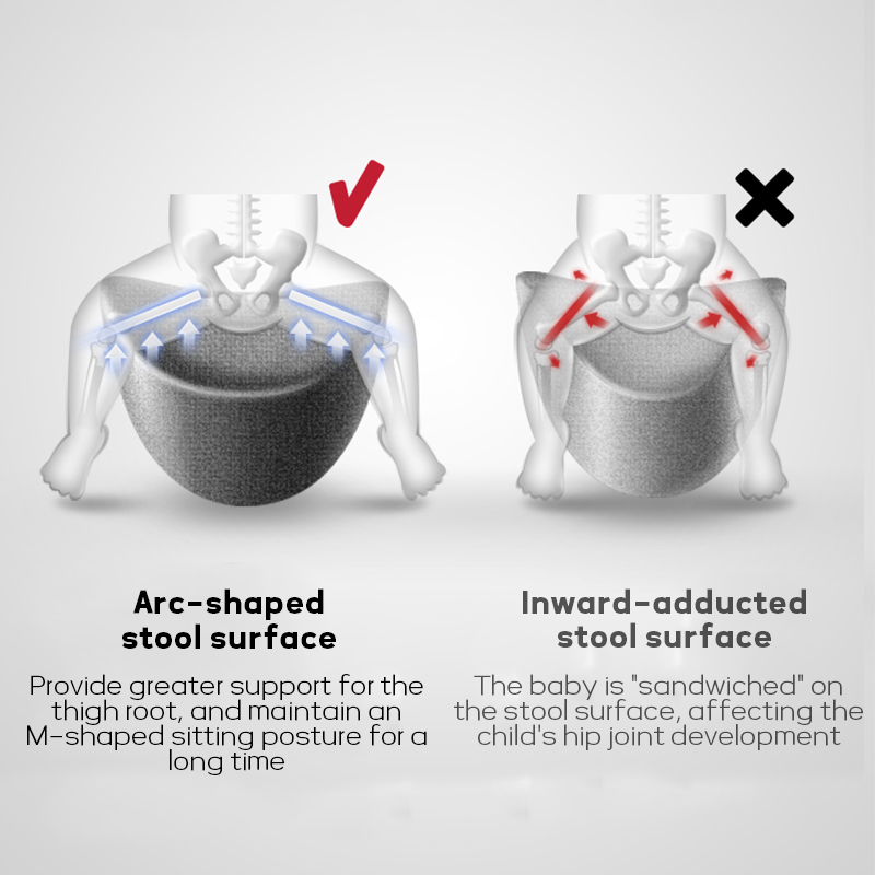 The thick and soft memory foam perfectly conforms to the baby's hips, providing optimal support. The non-slip silicone design ensures maximum stability and keeps the baby safe when sitting on the lumbar stool, while also reducing the impact on the baby's hips and preventing injuries.